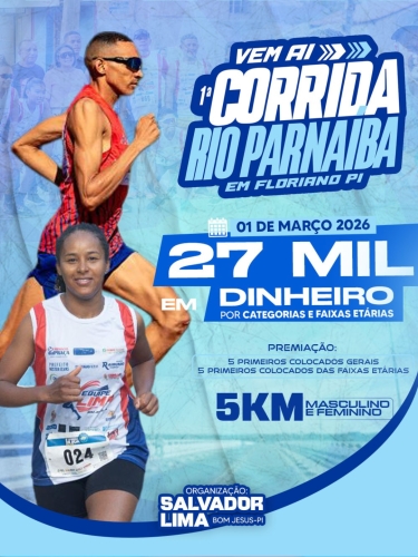 A 1ª CORRIDA RIO PARNAÍBA, em Floriano–PI, está chegando para colocar todo mundo pra voar baixo no dia 01 de março de 2026! 🏃💨